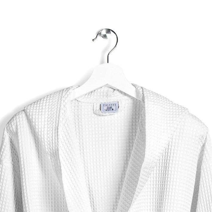 Accappatoio nido d’ape con cappuccio. Lasciati avvolgere dalla morbidezza dell’Accappatoio Polo di Caleffi. Realizzato in puro cotone ritorto con una struttura a nido d’ape, assicura massima assorbenza con minimo ingombro. Dotato di cappuccio, cintura e tasche frontali, si asciuga rapidamente e si ripone facilmente. Ideale per sport e viaggi, leggero e confortevole anche in estate. Resistente e luminoso nei colori, mantiene la sua qualitร  anche dopo numerosi lavaggi. Confezionato in busta salva-spazio, รจ una scelta eco-sostenibile.