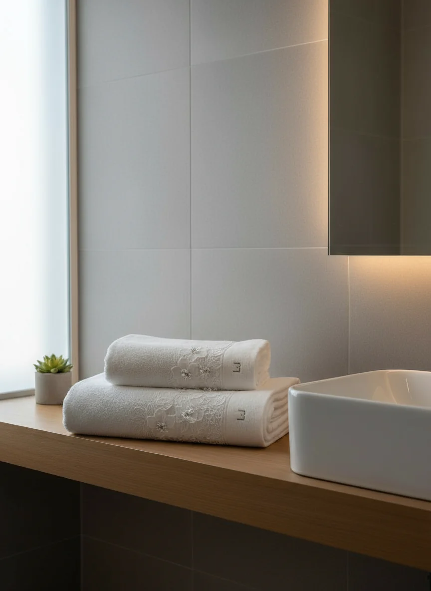 ๐งบ Composizione set: 1 asciugamano viso + 1 ospite