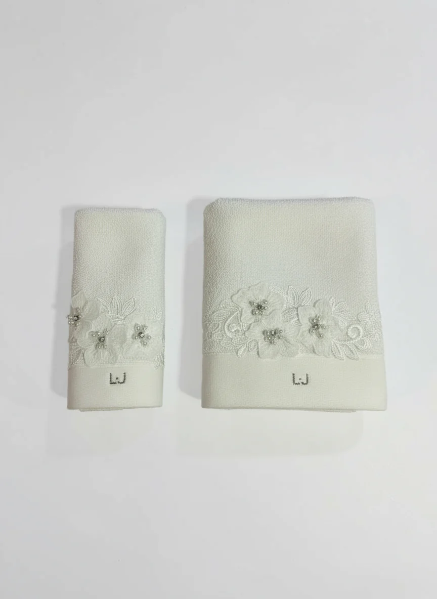 Coppia Asciugamani 1+1 Liu Jo Home โ Con Pizzo e Swarovski