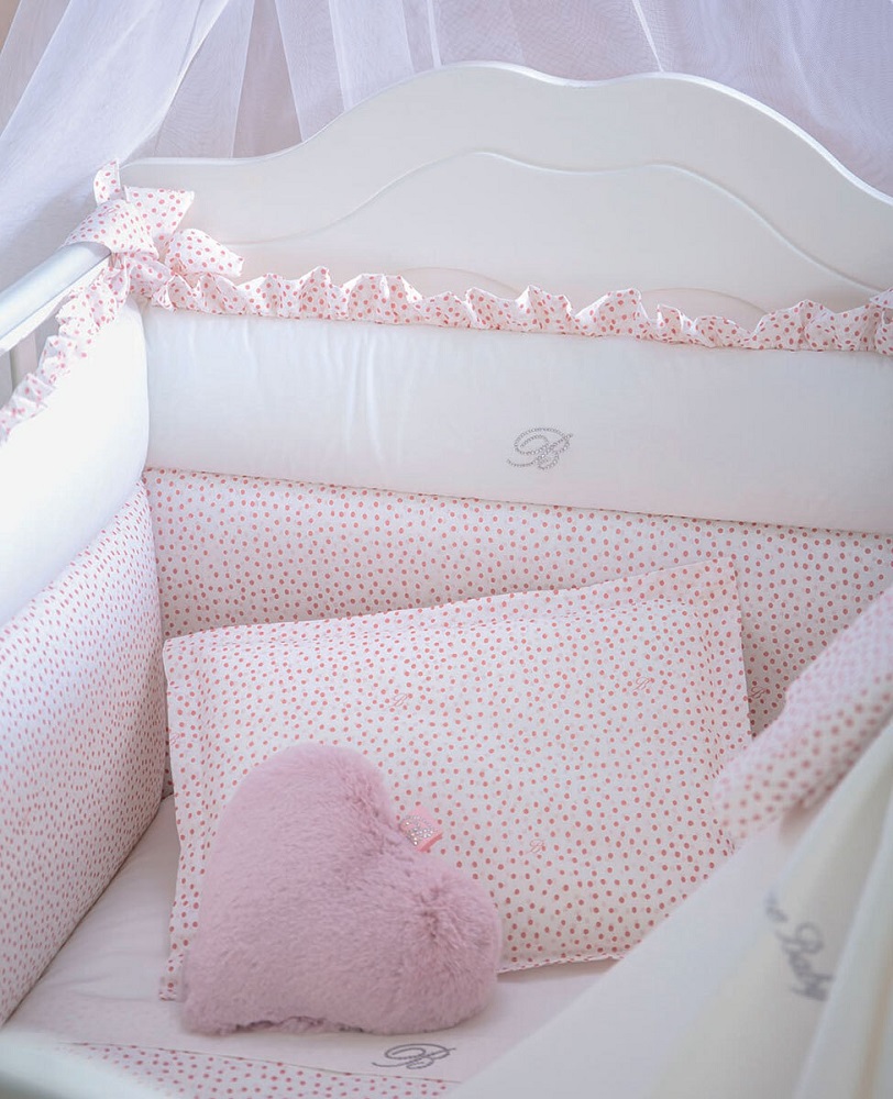 - paracolpi lettino 205×45 cm in percalle tinta unita stampato con logo in cristalli, retro completamente stampato, imbottitura da 550 g/mq