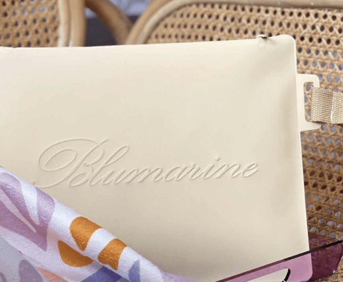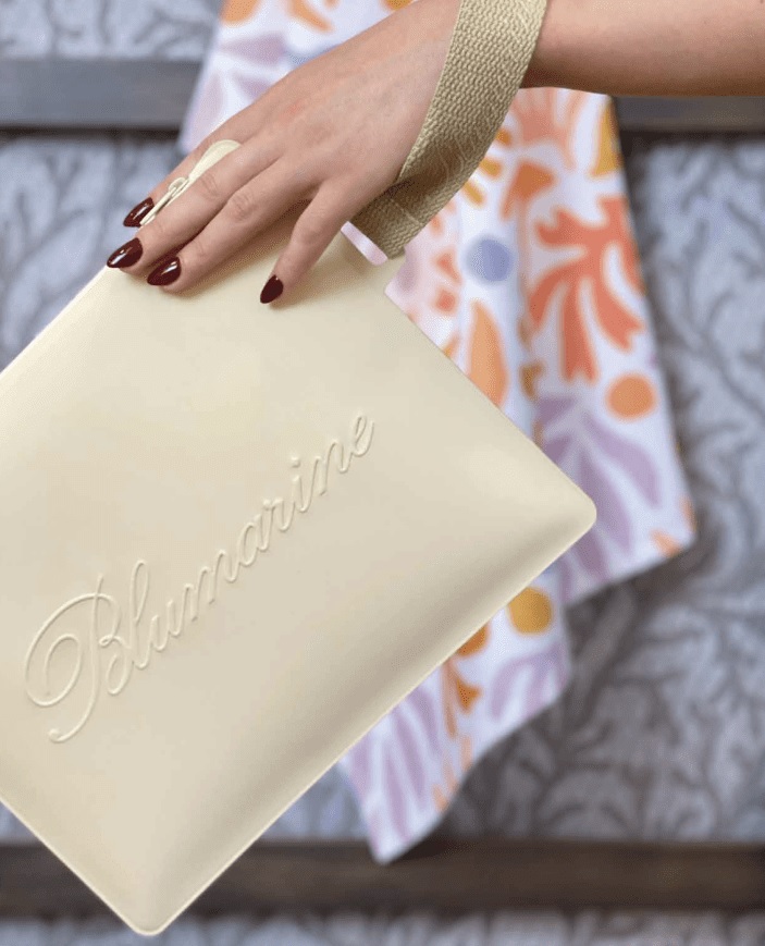 Pochette da mare in Lycra, elegante e versatile, con logo stampato a caldo per un tocco distintivo.