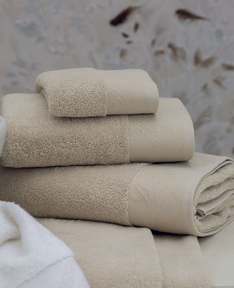 Set 5 pez in spugna idrofila con balza finale e logo piazzato in jacquard