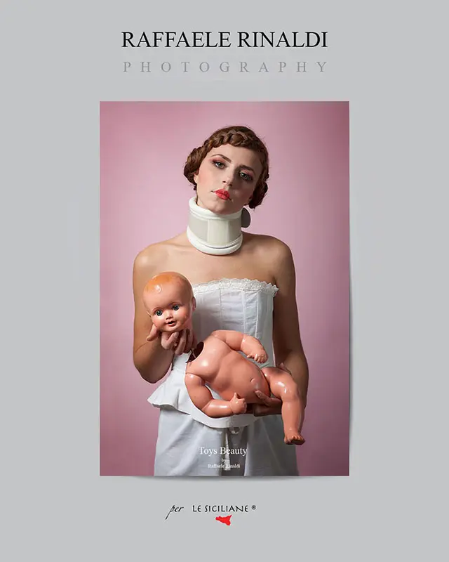 Raffaele Rinaldi Una famosa fotografia della serie “Toys Beauty”, Bambole rotte, in cui la bambola e l’essere umano condividono lo stesso destino, dato dal divenire e dal logorio inesorabile del tempo. La bambola rotta come metafora dell’imperfezione della vita. Il completo intimo è stato realizzato dallo stilista palermitano Ambrogio Barraco. La bambola di bachelite, è un antico ricordo di giochi della madre del fotografo. “Ho sempre fotografato i miei sogni, non la realtà ”.