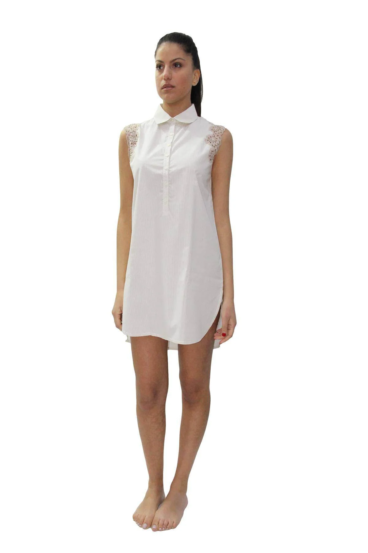 elegante camicia da notte giro manica in battista di cotone con pizzo applicato