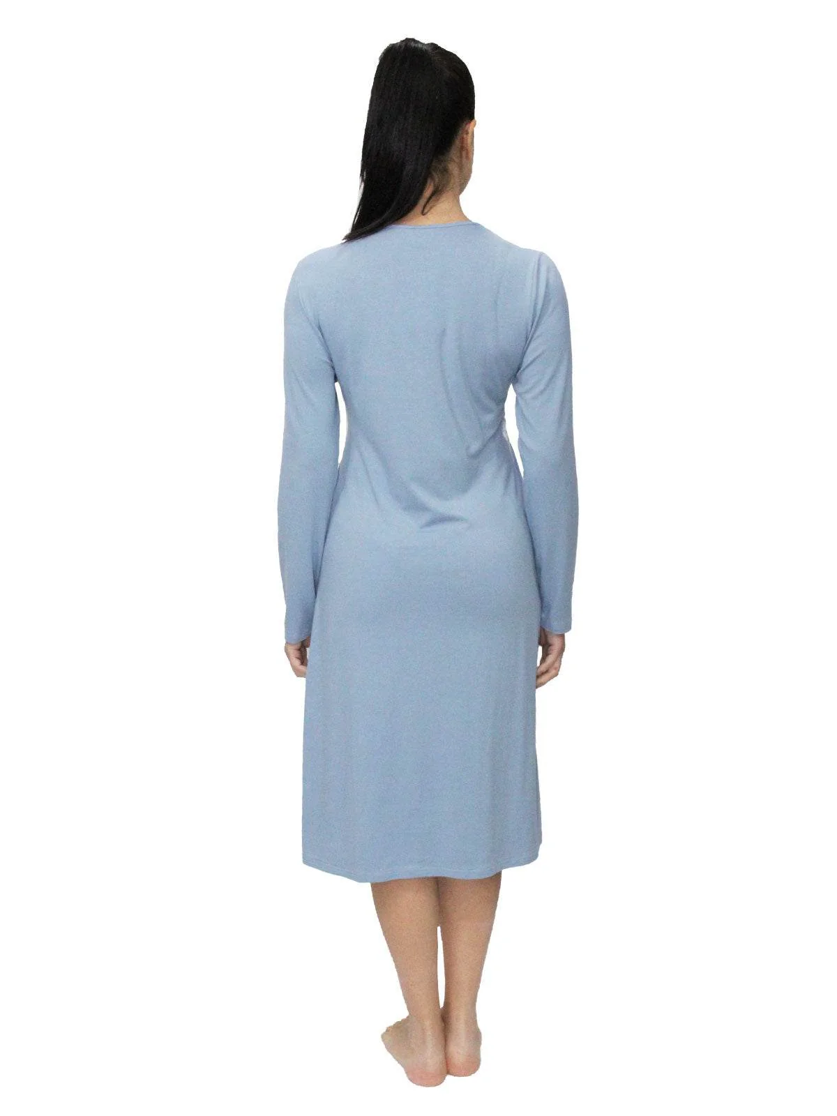 Comoda e raffinata, la camicia da notte Clara Rossi Firenze รจ realizzata in morbido modal, un tessuto naturalmente traspirante e piacevole sulla pelle. Il modello presenta una pratica abbottonatura serafino e una linea semplice ma femminile, ideale per il riposo quotidiano. Disponibile nei delicati colori rosa e jeans, unisce eleganza e comfort in un capo essenziale del guardaroba notte.
