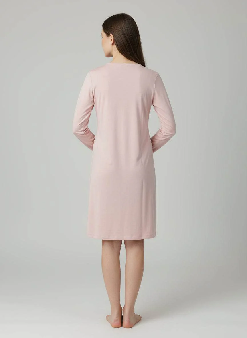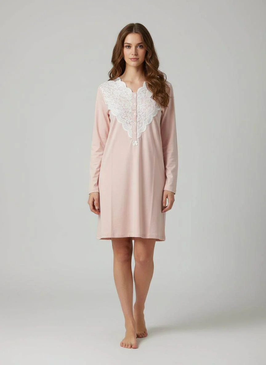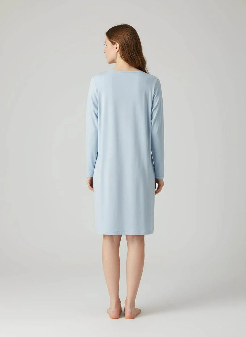 Il modello Serafino, caratterizzato dallo scollo con abbottonatura parziale, valorizza la femminilitร con un tocco di eleganza casual. La linea fluida e il taglio delicatamente sagomato offrono una vestibilitร comoda e raffinata, ideale sia per i momenti di relax in casa che per le giornate piรน dinamiche.