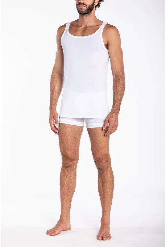 Questo capo d’abbigliamento intimo, caratterizzato da spalla stretta e senza cuciture sui fianchi, offre un comfort fit impeccabile. L’uso del cotone ritorto makรฒ, unito a un doppio trattamento di mercerizzazione, conferisce un aspetto setoso e raffinato all’indumento, garantendo anche una naturale elasticitร .