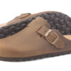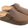 Sabot con tomaia in pelle nabuk ingrassato lavorato senza cuciture. Regolabile, con cinturino dotato di fibbia in metallo.