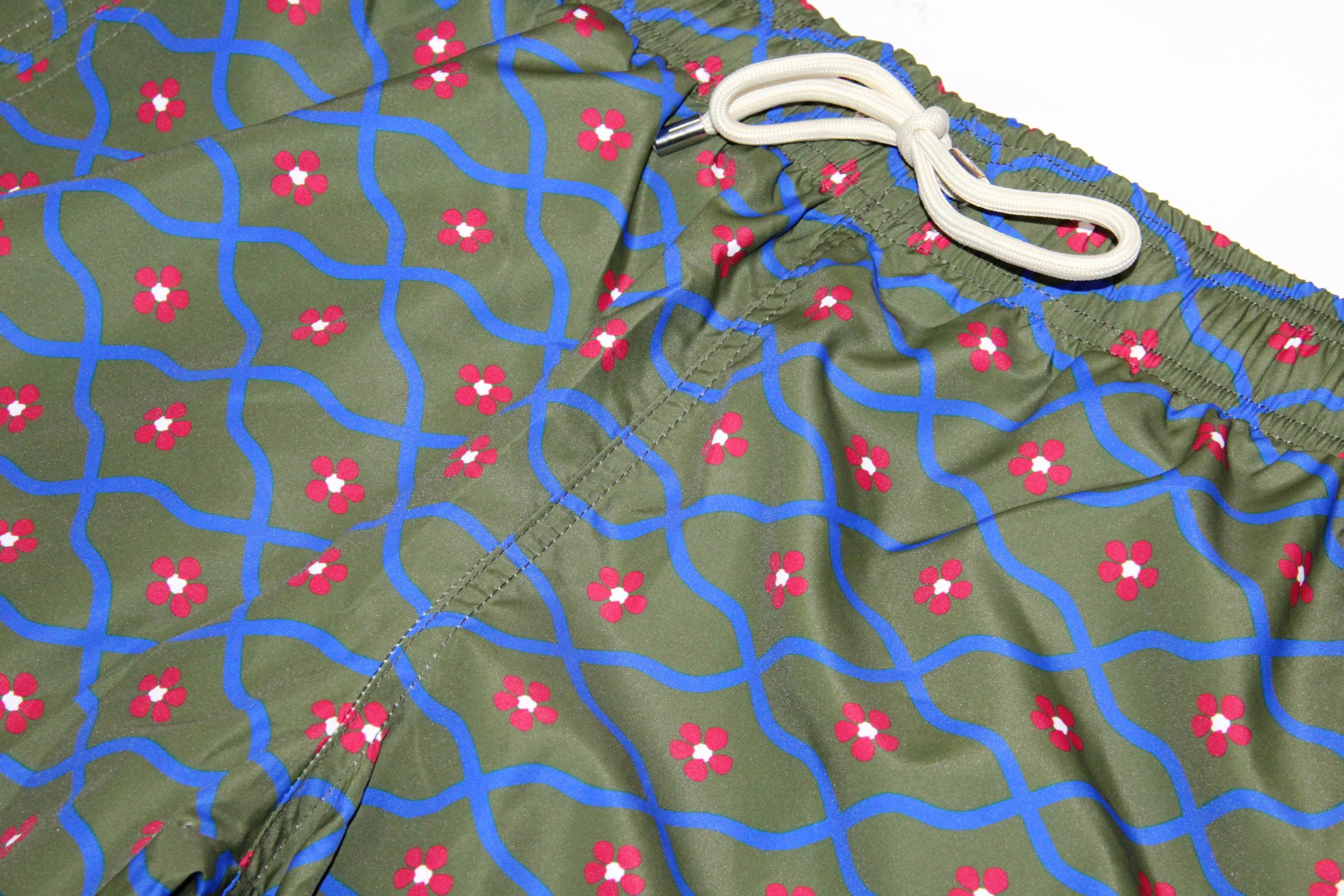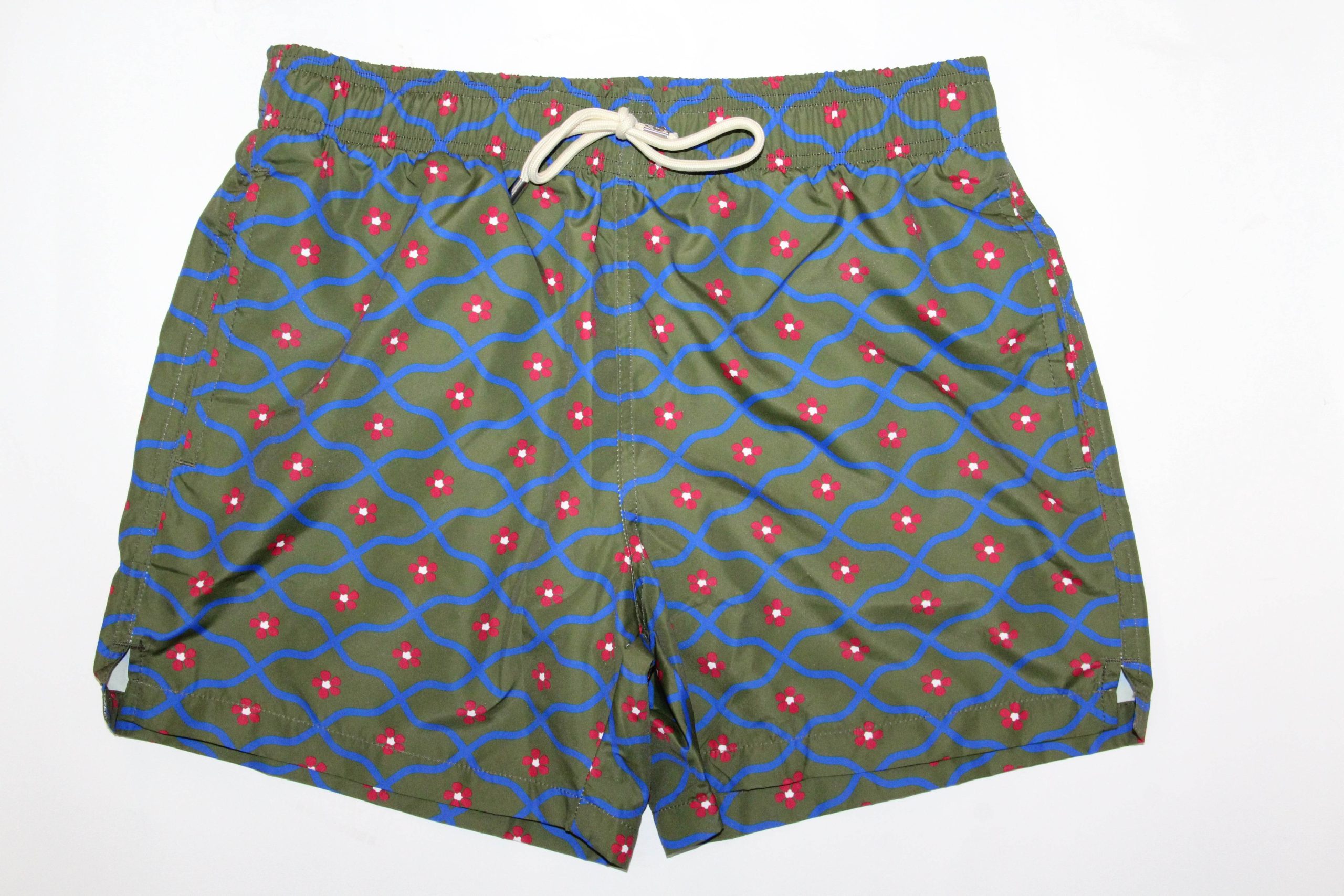 Costume da bagno da uomo modello boxer della collezione Dandy Ironic Summer, decorato con una vivace fantasia geometrica dai colori a contrasto su sfondo verde. Il design audace e dinamico dona un tocco distintivo al look da spiaggia, perfetto per chi ama farsi notare con ironia e stile. Realizzato in tessuto tecnico leggero e ad asciugatura rapida, presenta vita elasticizzata con coulisse regolabile, tasche laterali e taschino posteriore con chiusura a strappo.