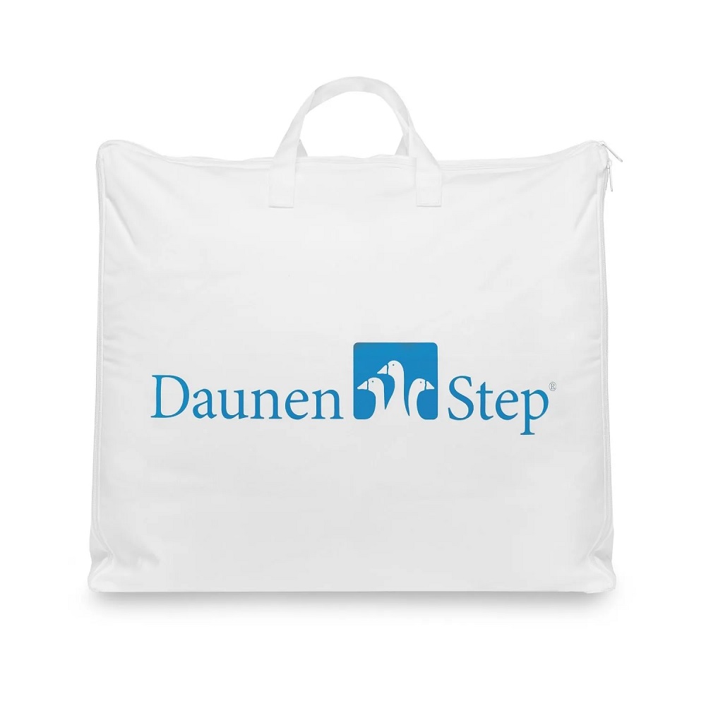 Una delle peculiaritร offerta dai piumoni DaunenStep รจ la trapuntatura a quadri fissi che mantiene il calore uguale su tutta la superficie del capo, mentre lo speciale bordo piatto con asole รจ costruito per far sรฌ che due piumini possano essere uniti insieme.