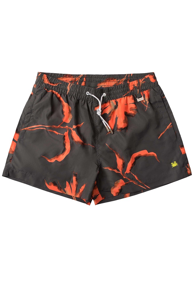 Costume boxer classico da uomo con fantasia con palme. Realizzato in tessuto leggero ad asciugatura rapida, รจ elasticizzato in vita con una pratica coulisse e presenta due comode tasche su entrambi i lati, oltre a dei piccoli spacchi laterali che ne garantiscono maggiore comfort. Gli slip interni sono ergonomici.
