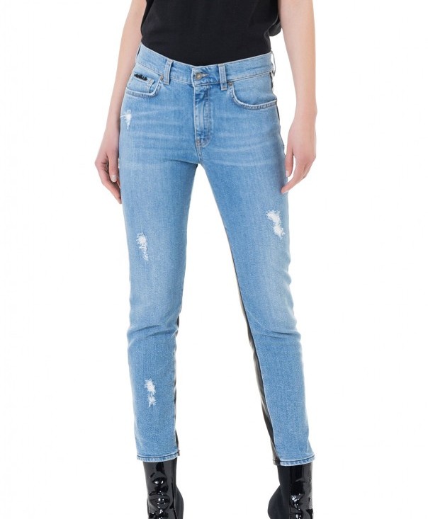 JEANS PARTE ANTERIORE IN DENIM E POSTERIORE IN ECOPELLE