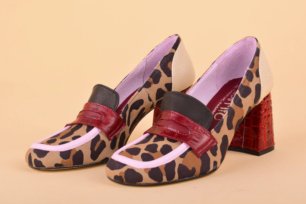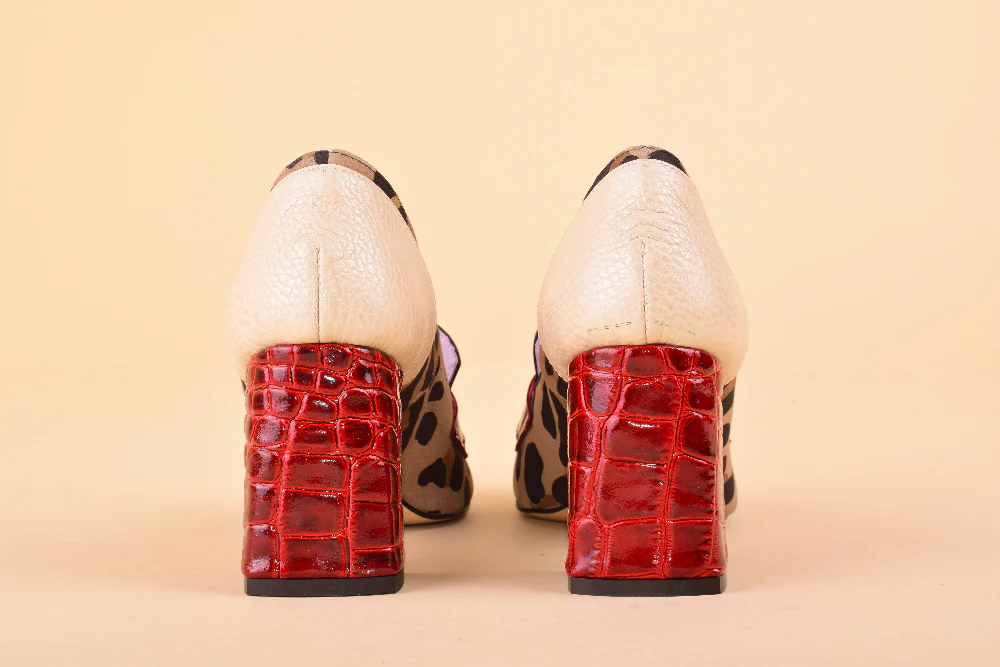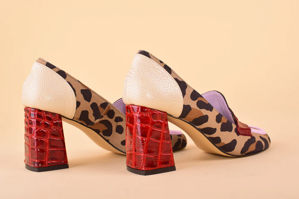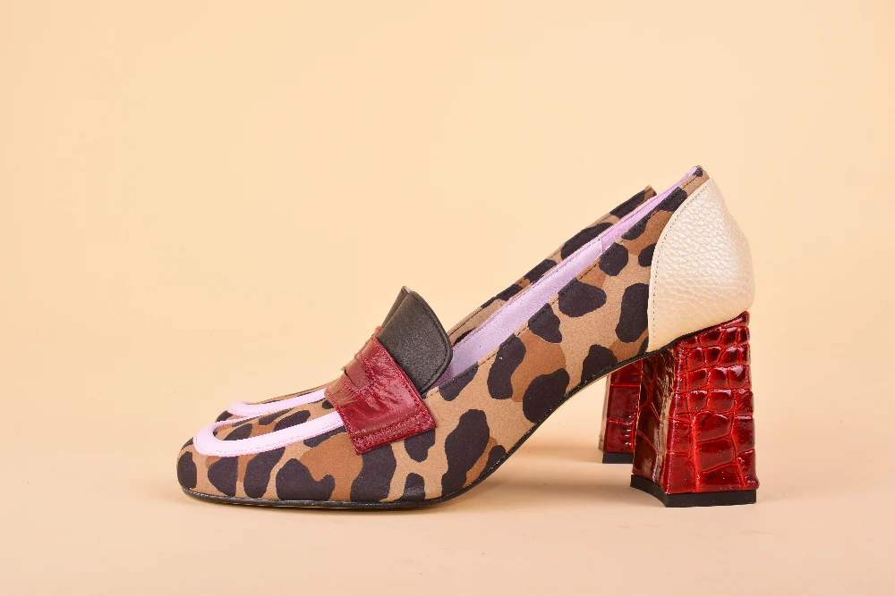 Scopri il tocco giocoso dei mocassini “Glitch Glam”: un mix audace di pelle patchwork con un tacco di 7,5 cm che slancia senza rinunciare al comfort. Perfetti per chi ama distinguersi con stile e un pizzico di ironia, questi mocassini aggiungono carattere a ogni passo.