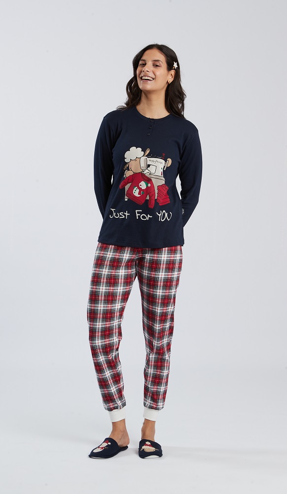 Pigiama donna in morbidissimo caldo cotone, pantalone con polsini