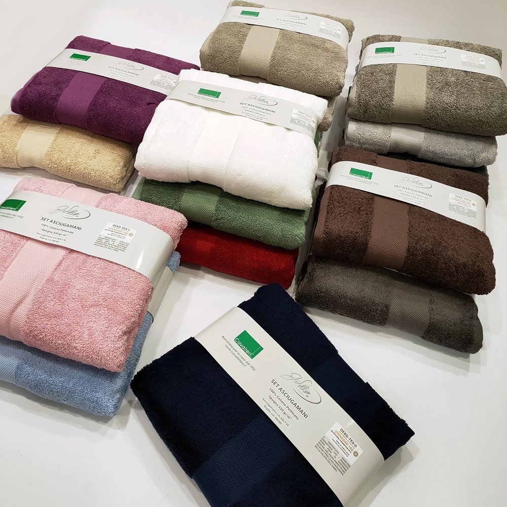 JOLIE SET ASCIUGAMANO + OSPITE IN SPUGNA IDROFILA 100% COTONE PETTINATO, ALTO POTERE
