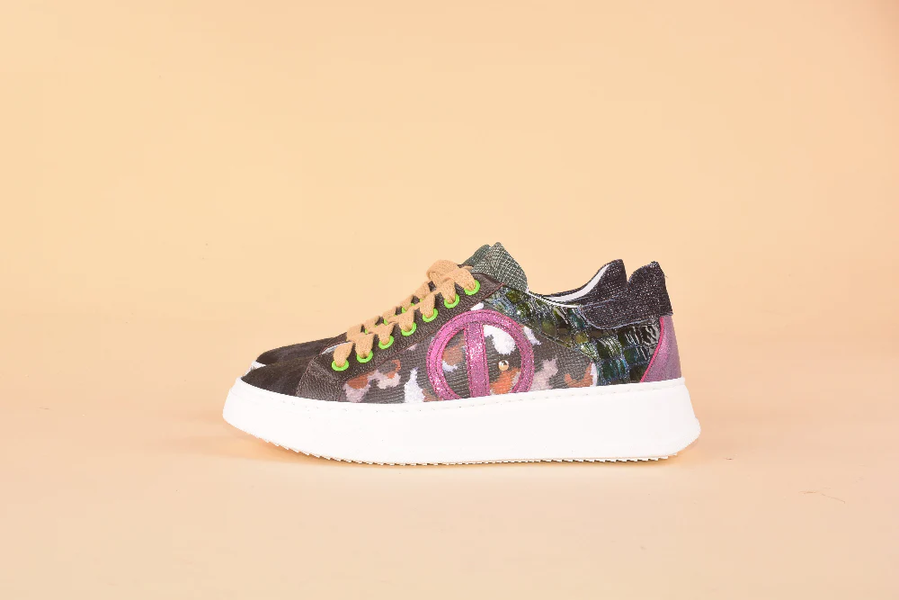 Juggling Cake รจ la sneaker che trasforma ogni passo in uno spettacolo! Con il suo esterno in pelle patchwork dai colori vivaci, cattura lo sguardo e l’anima. La comoditร รจ garantita dalla soletta in lattice e pelle estraibile di 2cm, perfetta per un supporto personalizzato. La platform in gomma da 4cm regala un’andatura sicura e […]