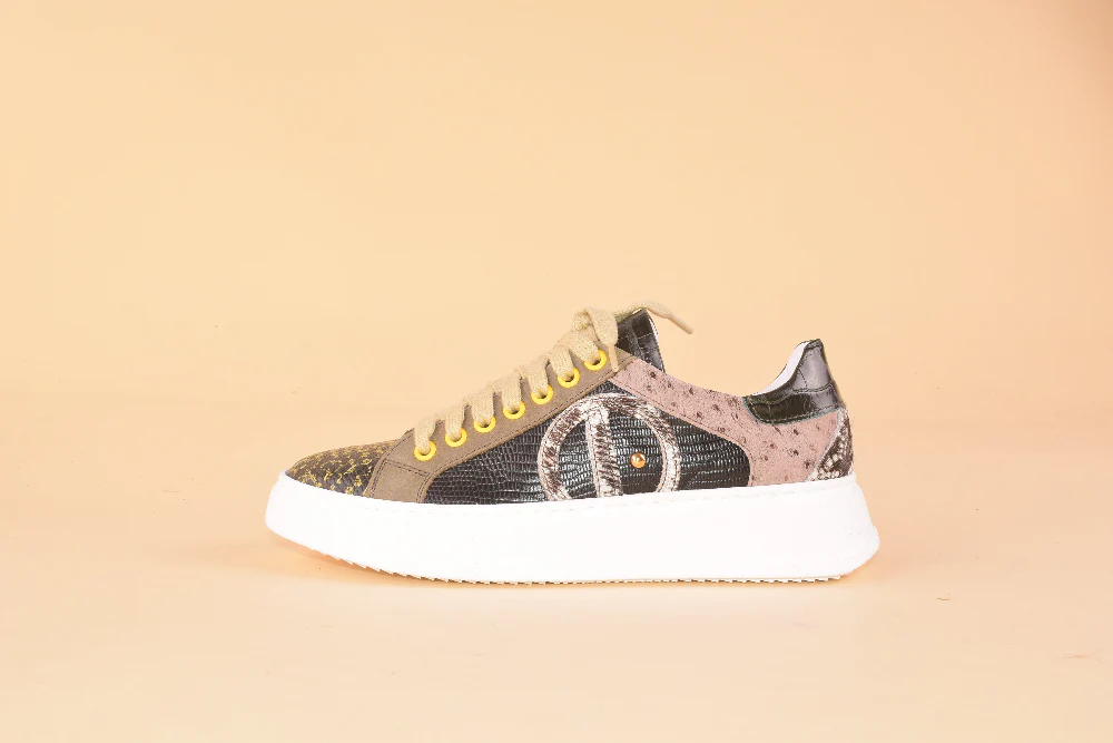 Juggling Cake รจ la sneaker che trasforma ogni passo in uno spettacolo! Con il suo esterno in pelle patchwork dai colori vivaci, cattura lo sguardo e l’anima. La comoditร รจ garantita dalla soletta in lattice e pelle estraibile di 2cm, perfetta per un supporto personalizzato. La platform in gomma da 4cm regala un’andatura sicura e stilosa, mentre la suola in gomma assicura grip e durabilitร . Indossale per aggiungere un tocco di gioia e originalitร al tuo guardaroba quotidiano.