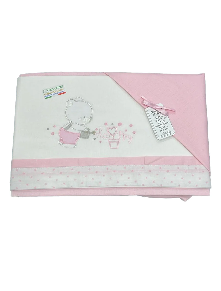 Completo culla lettino โ fantasia orsacchiotti con piantina bianco/rosa