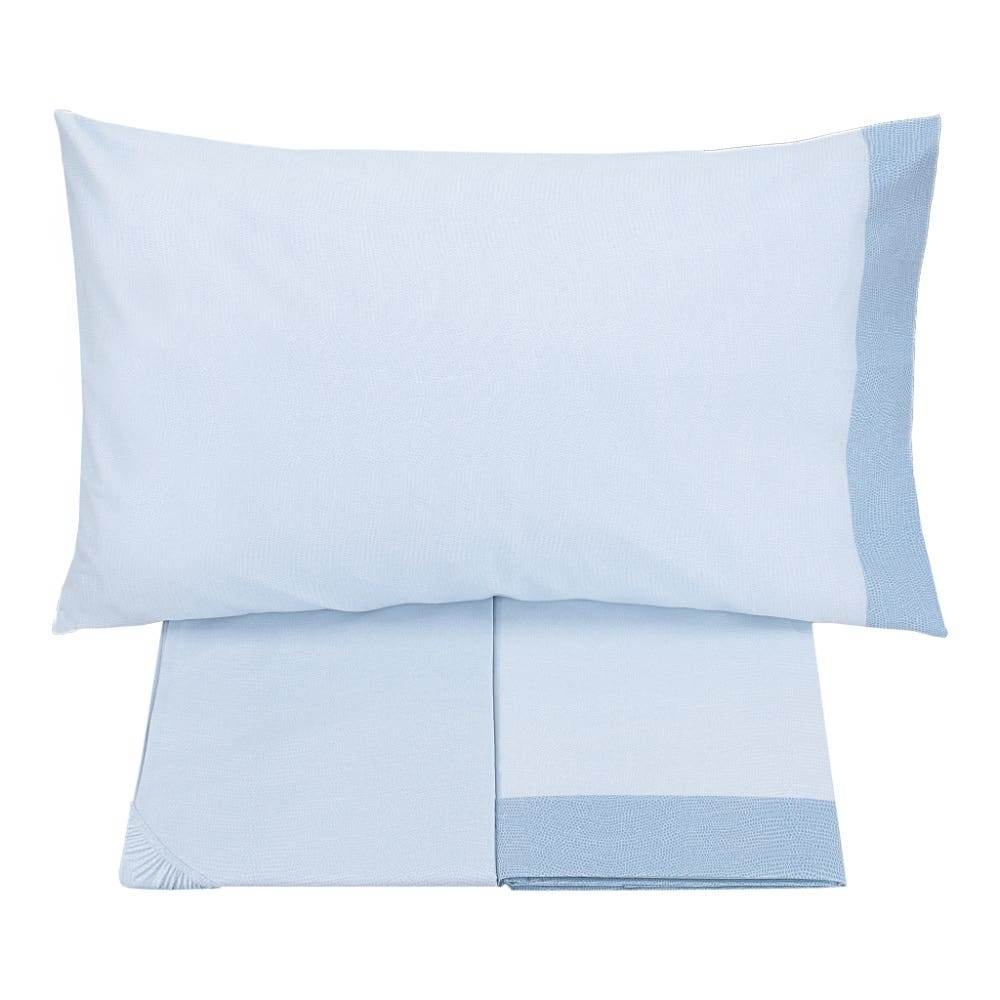 Il completo lenzuolo Chromo รจ composto da un lenzuolo sopra, un sottolenzuolo con angoli e federe coordinate, rendendolo perfetto da abbinare alla trapunta invernale o al copriletto trapuntato primaverile della stessa collezione.