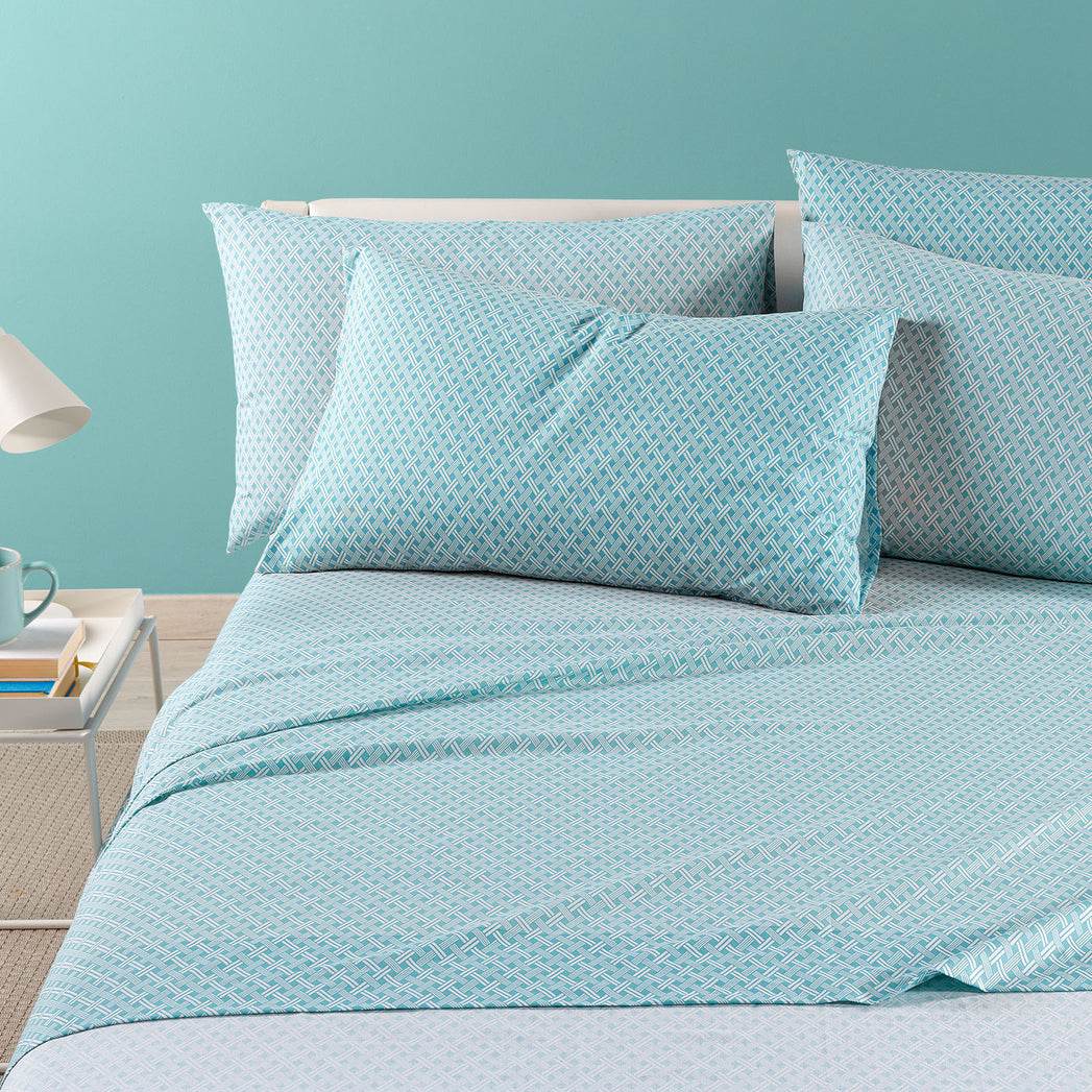 Singolo: lenzuolo sopra 160×280 cm, lenzuolo sotto con angoli 90×200 cm, 1 federa 50×80 cm