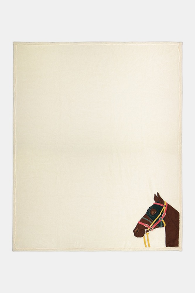 PLAID IN BUSSY EFFETTO PELUCHEย CON RICAMO E APPLICAZIONI DI CAVALLO DA PARATA MISURA CM. 150 X 180