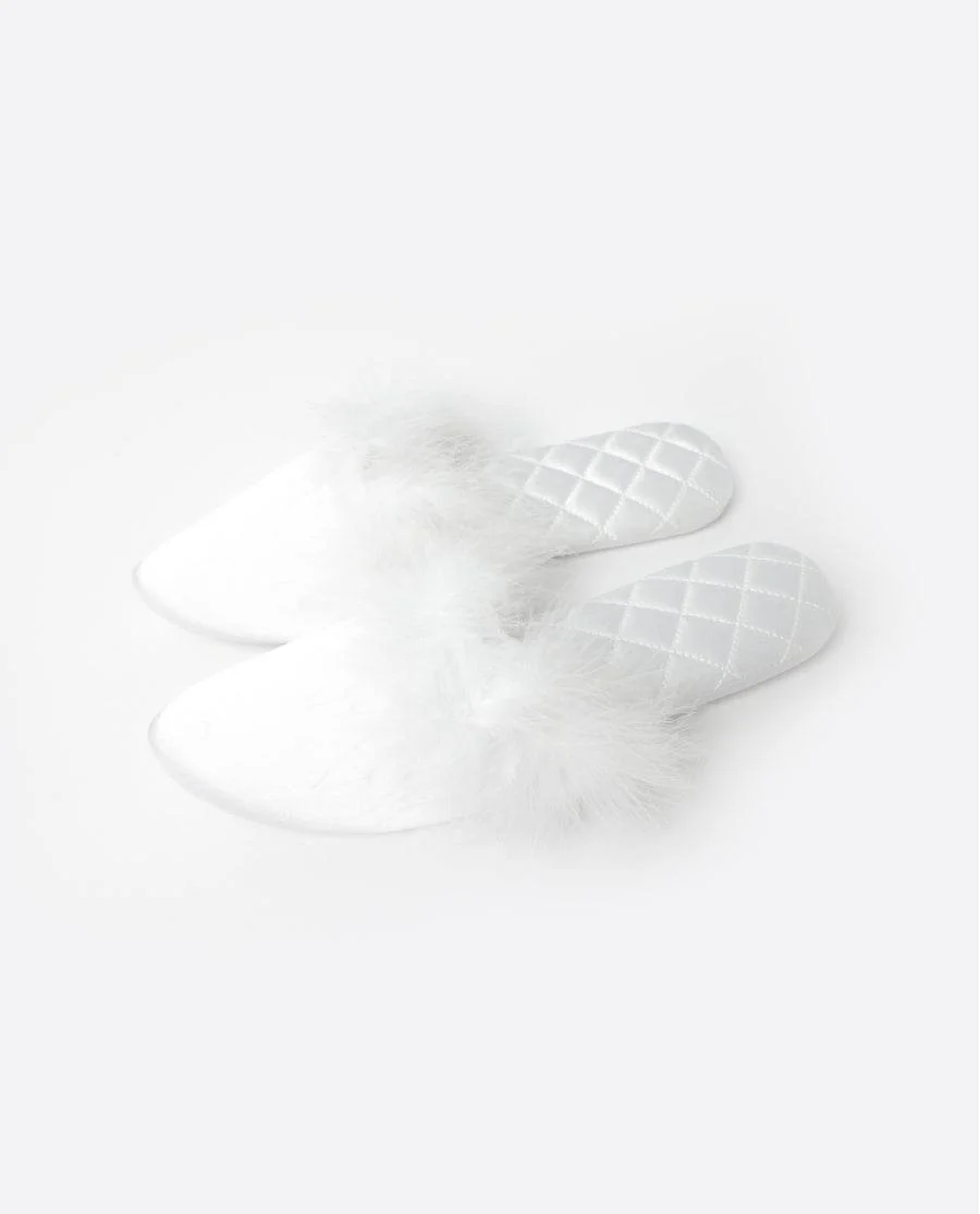 Ciabatte da sposa in raso con piume โ Donna
