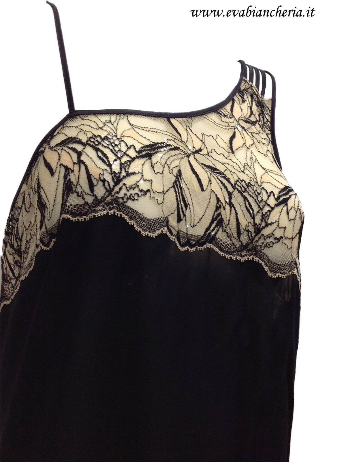 PARIGINA CORTA CREPE IN SETA, CON PIZZO SULLA PARTE ALTA E DA UN LATO BRETELLA A MONOSPALLA