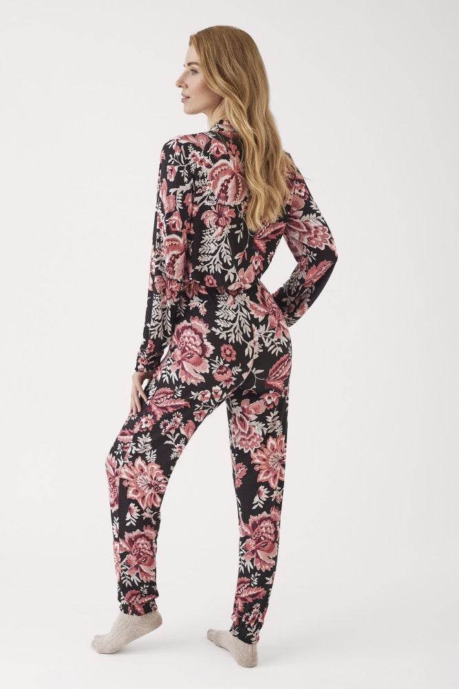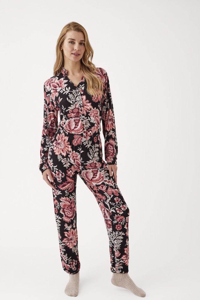 Comodo e avvolgente, questo pigiama da donna aperto รจ realizzato in morbido tessuto modal effetto vellutato con stampa elegante, ideale per il relax a casa. La composizione 95% viscosa e 5% elastan garantisce elasticitร e una vestibilitร confortevole.
