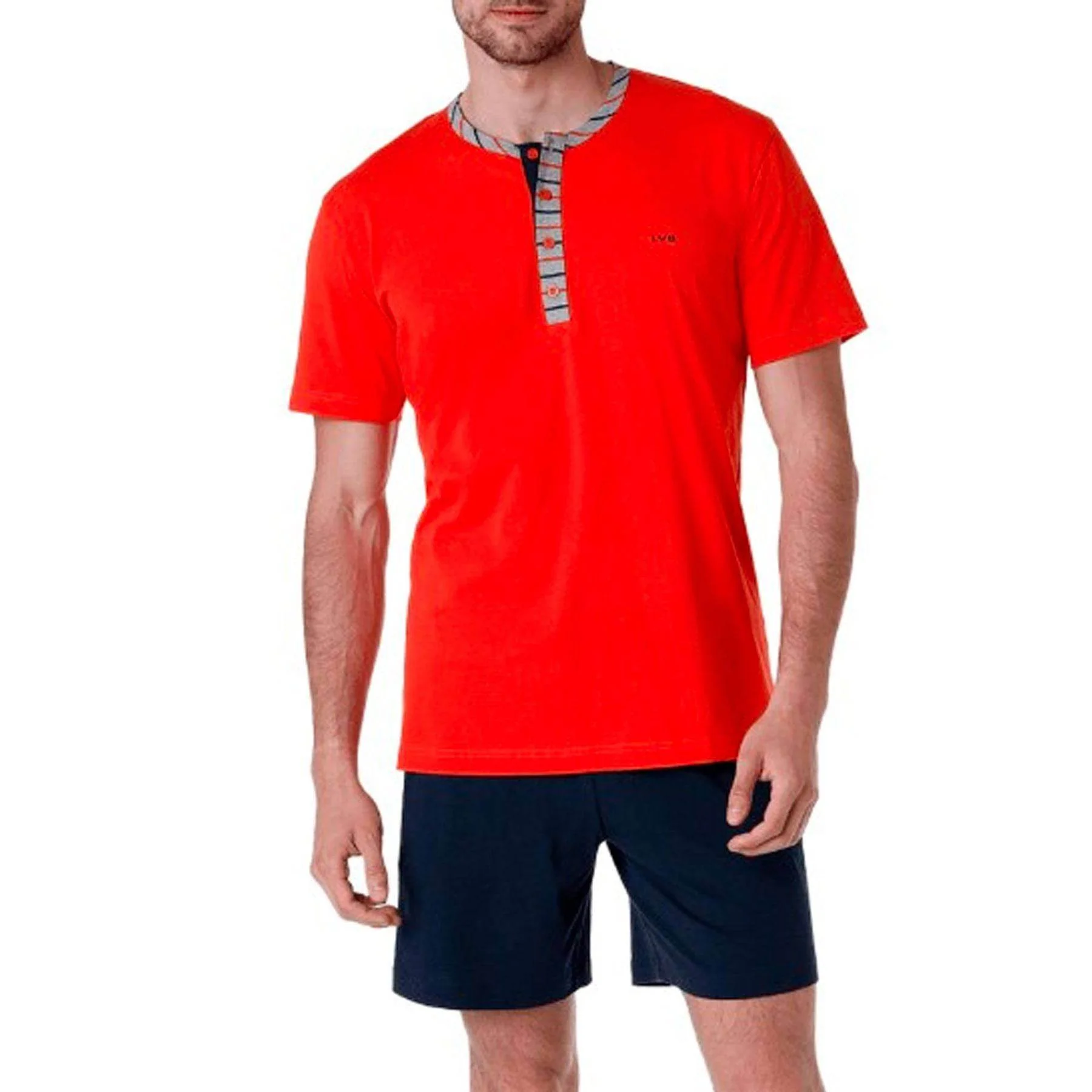 Goditi il comfort e lo stile con il nostro Pigiama Uomo Lovable Mezza Manica Pantaloncino L0CQ1, un capo perfetto per le tue notti di relax. Questo pigiama corto serafino รจ disponibile in due varianti di colore: un vibrante arancio che aggiunge un tocco di vitalitร alla tua notte e un elegante blu navy con un profilo a collo scozzese che conferisce un tocco di classe e tradizione.