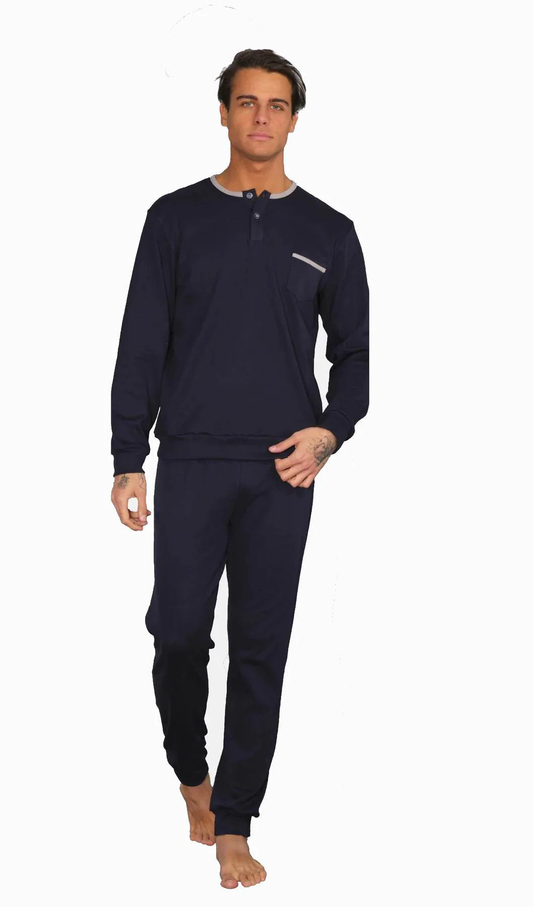 Il pigiama uomo in caldo cotone con abbottonatura serafino della marca Ferrucci รจ progettato per garantire comfort e calore durante le notti invernali. Realizzato in morbido cotone, รจ perfetto per mantenere una piacevole sensazione di calore senza rinunciare alla traspirabilitร . Il design con abbottonatura serafino aggiunge un tocco di praticitร e stile. Disponibile nelle eleganti tonalitร blu o petrolio, รจ ideale per un look rilassato ma curato.