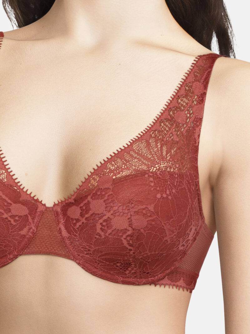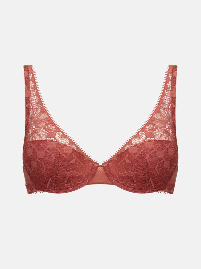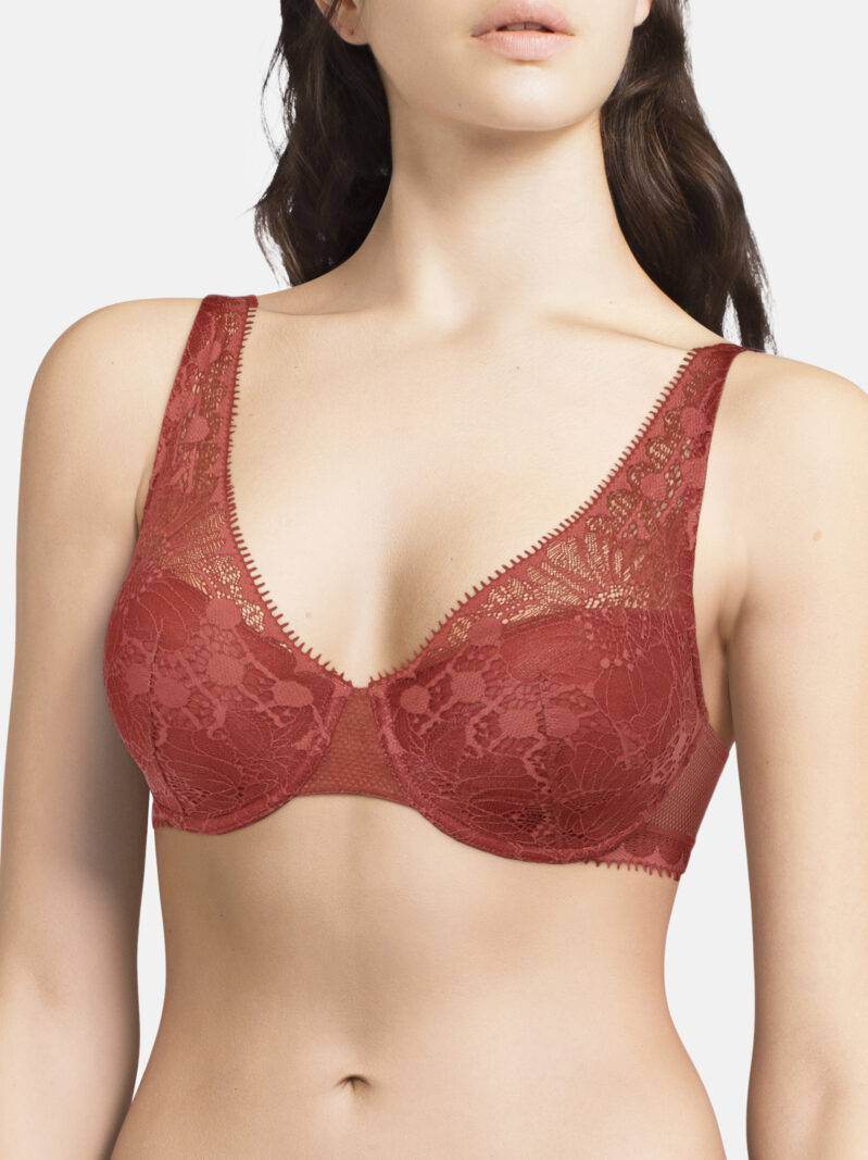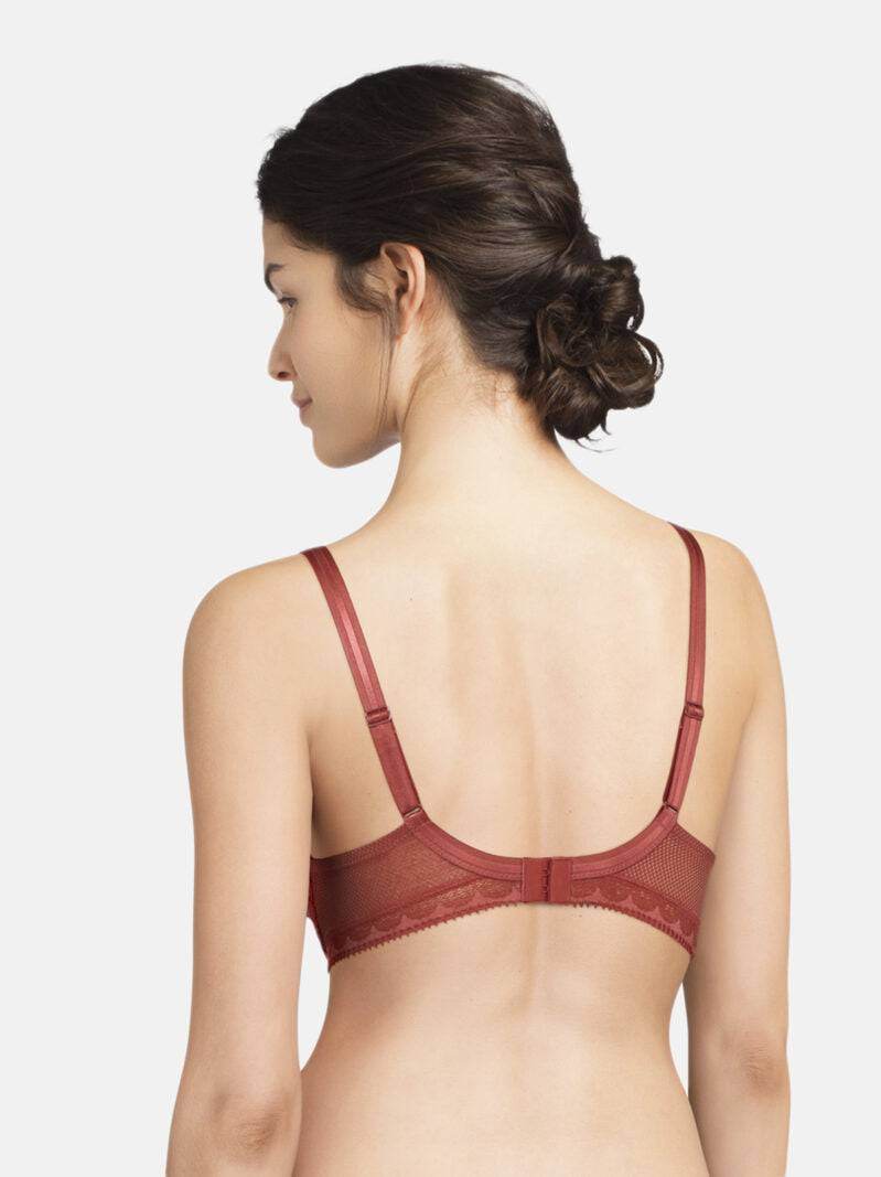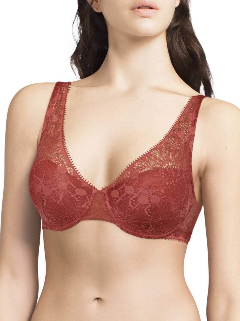 Coppe spacer semi trasparente in materiale traspirante e morbido per maggiore comfort, ricoperte in pizzo lycra. Baschina centrale in tulle fantasia doppiata in tulle rigido. Dorsale brassiรจre in tulle fantasia con valencienne in pizzo nella parte bassa, doppiato in tulle per maggiore sostegno. Allacciatura imbottita con 4 altezze. Morbide spalline fantasia interamente regolabili. Fiocco sulla baschina centrale e placchetta siglata Chantelle sul lato.
