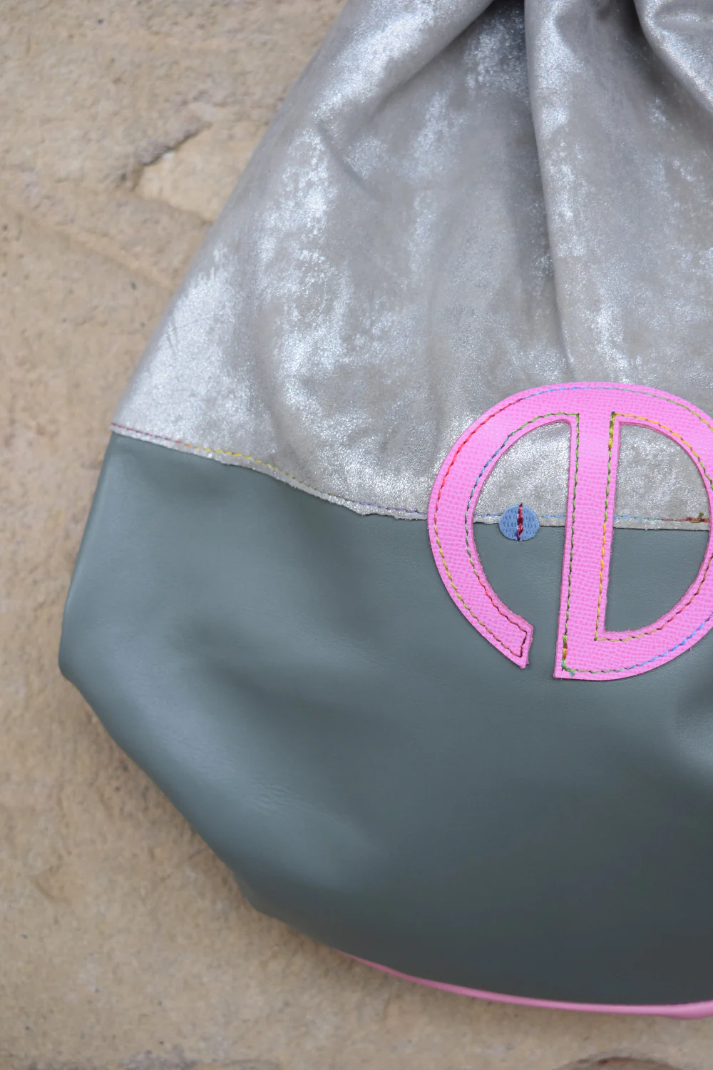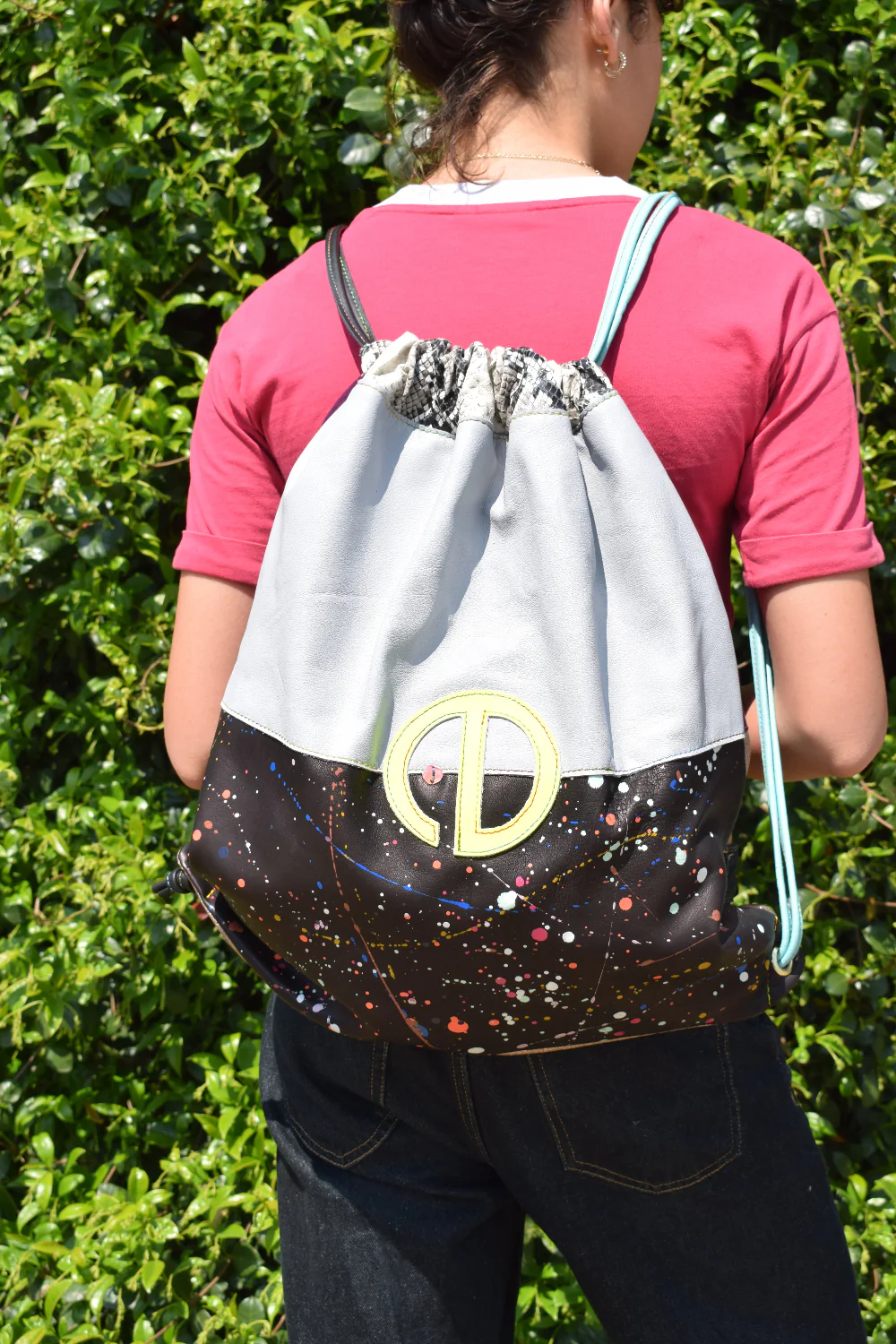 Rot-Nest – Sacca con coulisse in pelle patchwork