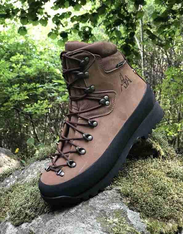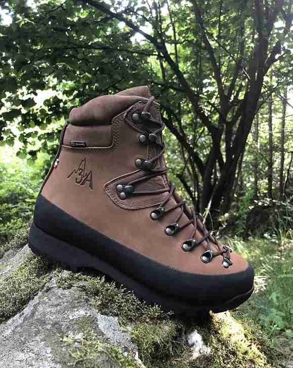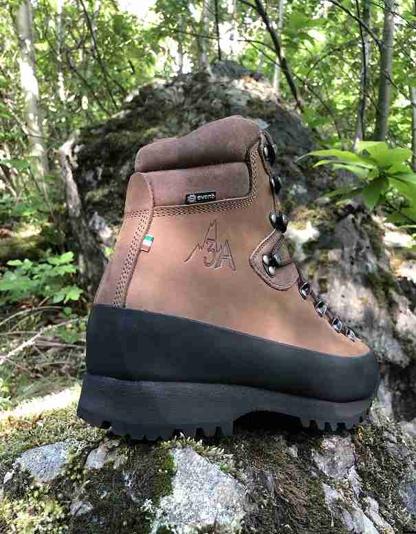 impermeabile garantito scarpone pelle nubuck suola vibram ganci a carrucolina pezzo unico di pelle gancio blocca caviglia suola autopulente
