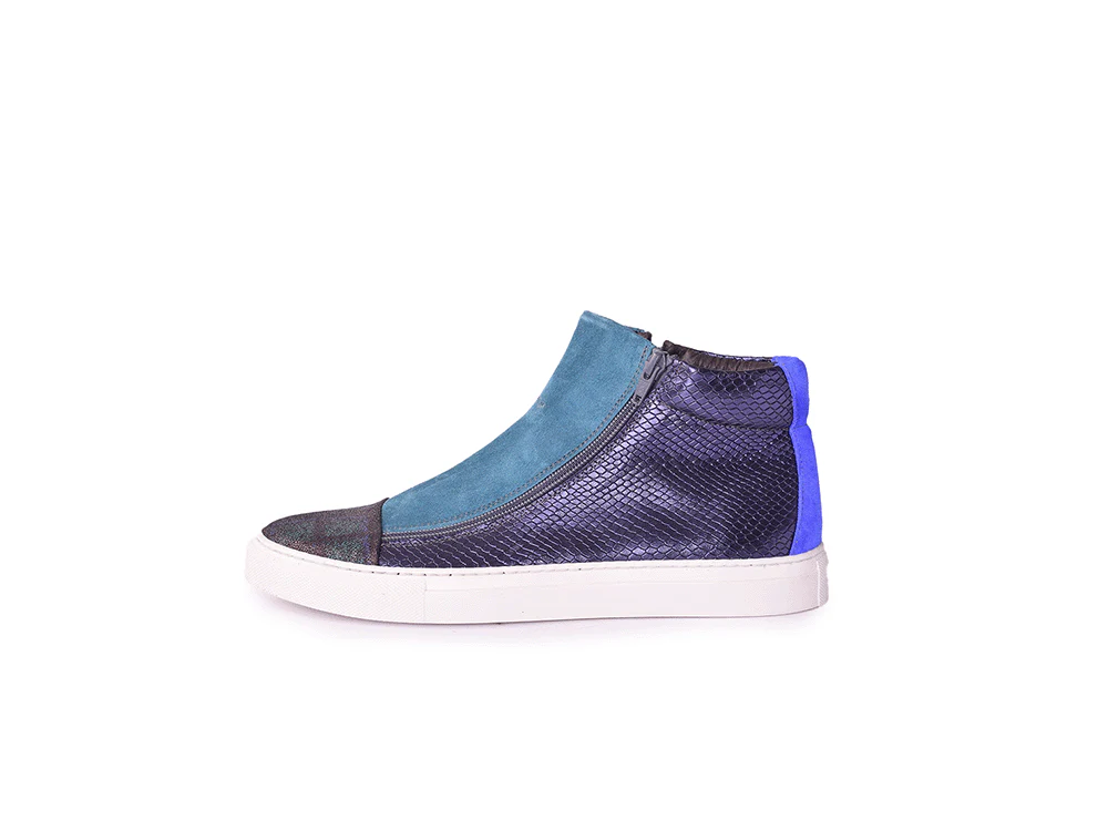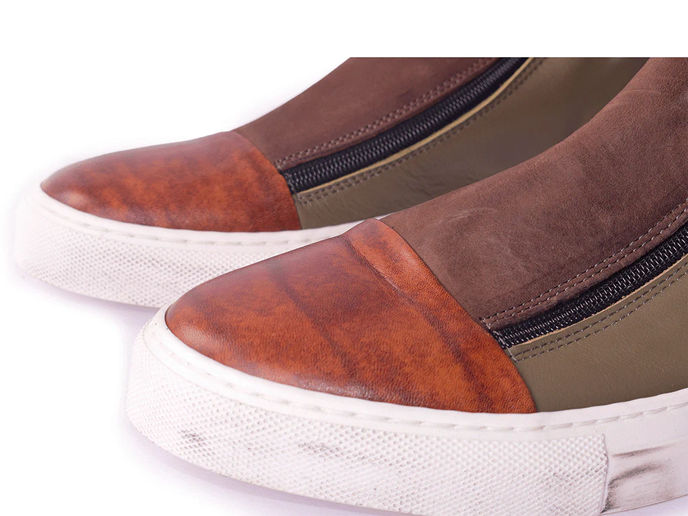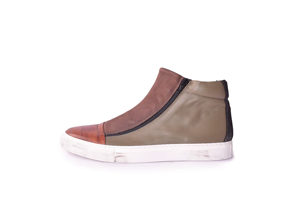 La “Scimmia volante Man” รจ una sneakers minimal e funzionale, arricchita da due zip laterali per un comfort immediato. Realizzata con morbidi pellami patchwork, offre una calzata perfetta. Il suo mix di colori la rende versatile, ideale da abbinare a jeans o pantaloni eleganti, per un look casual e raffinato in ogni occasione.