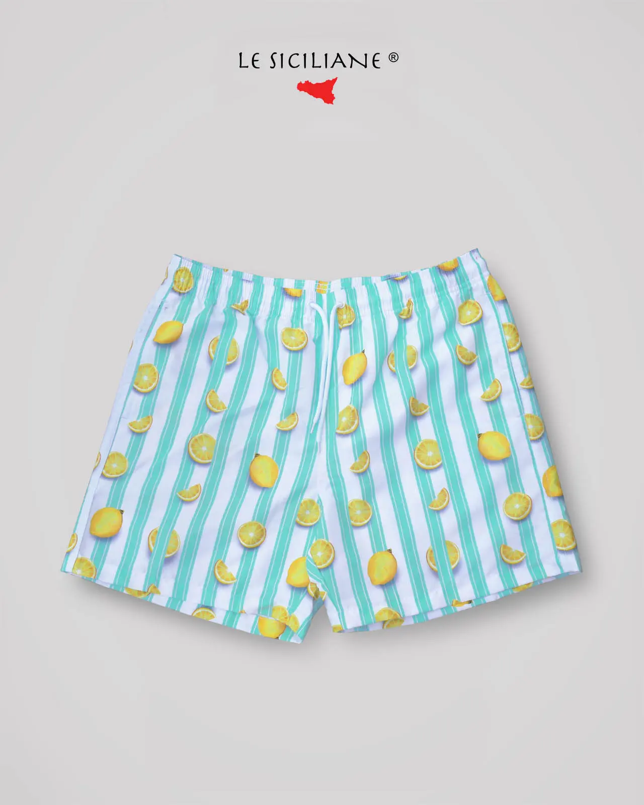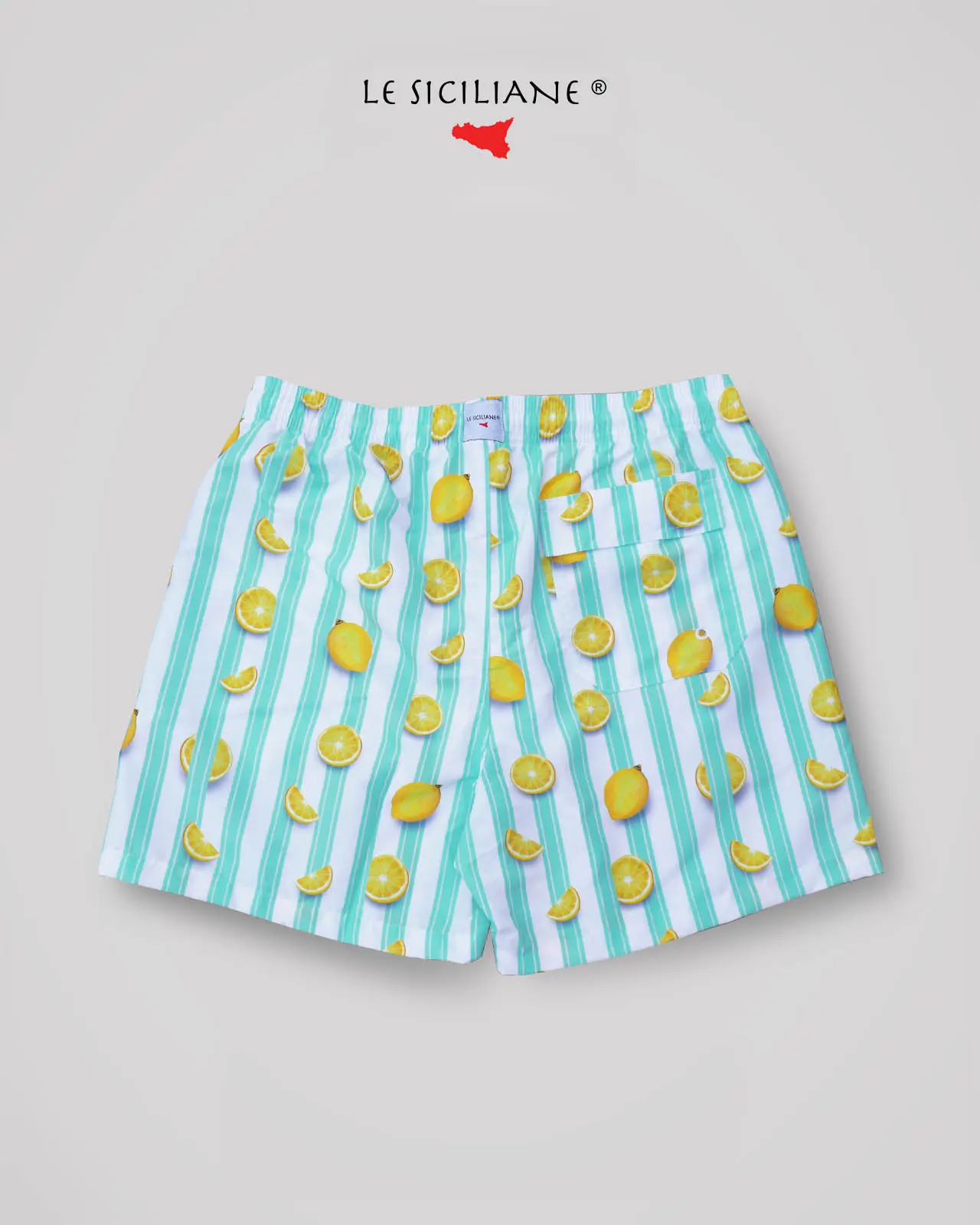 Disponible de fรฉvrier ร mars 2025 Short de bain “Citrons de Sicile” Tissu polyester de haute qualitรฉ, doux au toucher et non plastifiรฉ. Poches avant et poche arriรจre. Rรฉtine interne. Sac ร cordon avec les mรชmes graphismes que le maillot de bain.