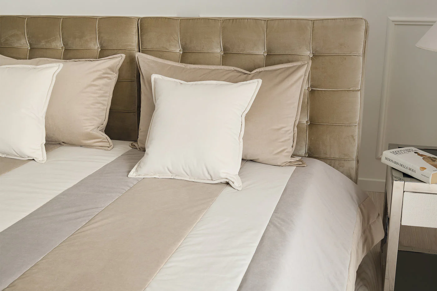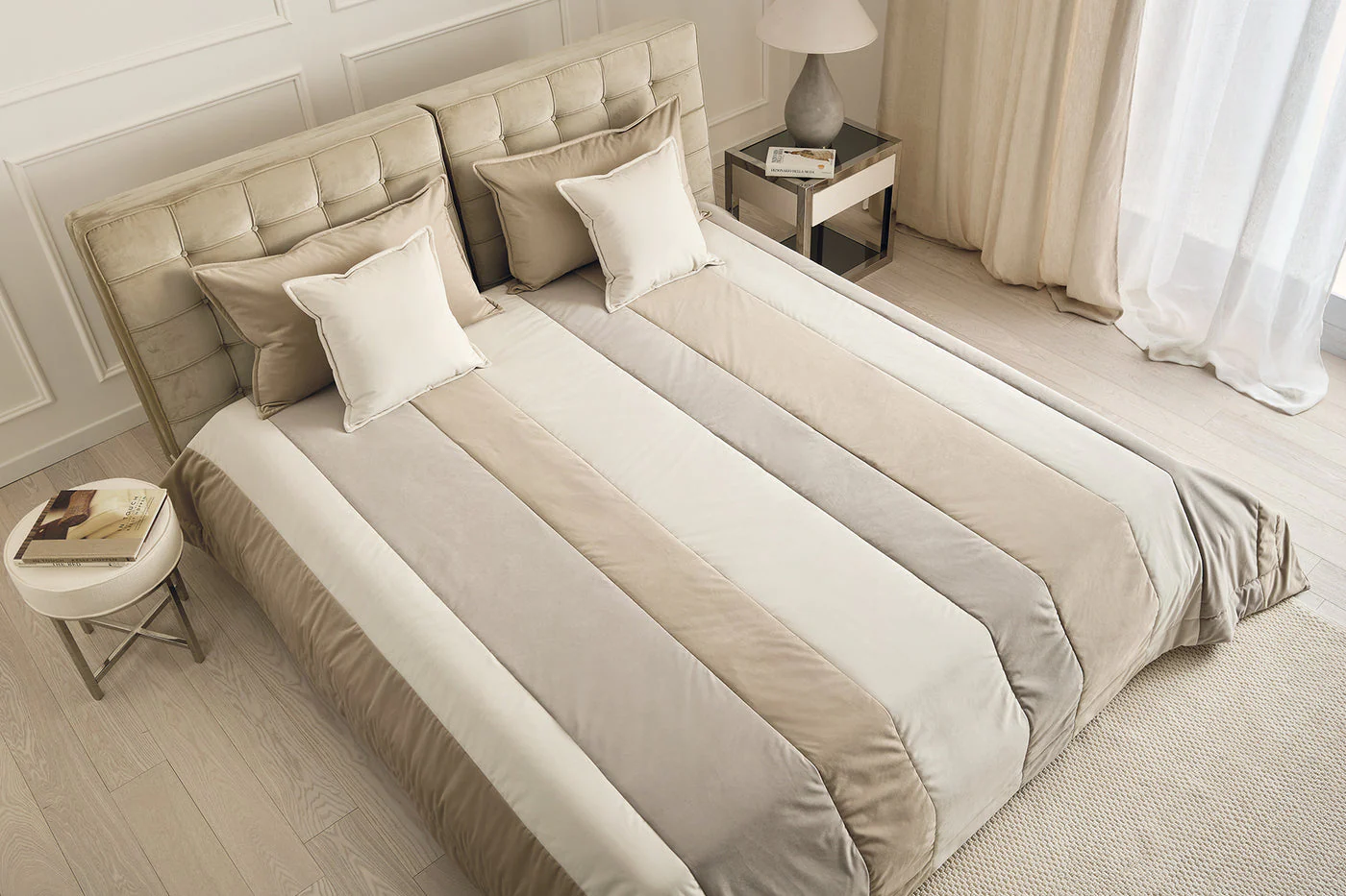 Trapunta โCromie Patchworkโ in Velluto Sabbia โ Mastro Raphael