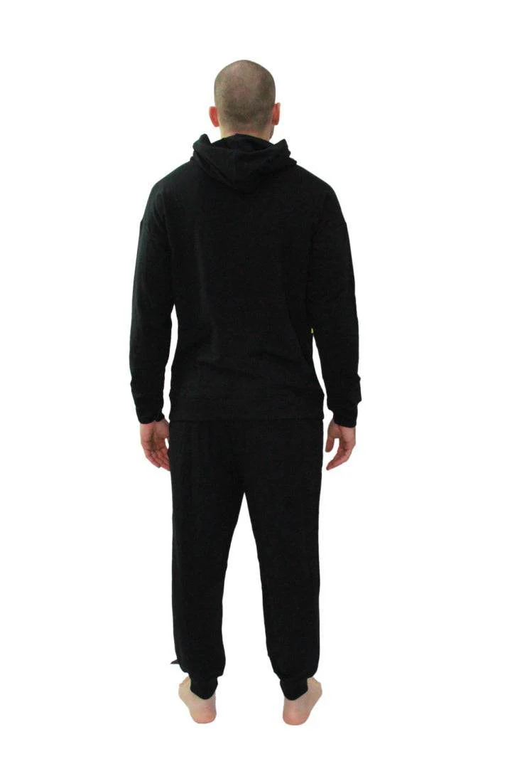 Tuta uomo felapta con cappuaccio del noto brand Calvin Klein, Con loghi a contrasto flou, Maglia e pantalone con polsini.