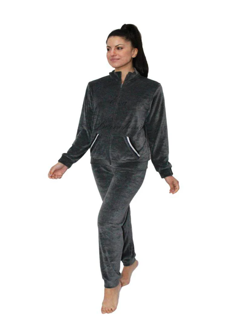 Tuta da donna in morbida ciniglia rasata in tintya unita, con zip. Prodotto 100 made in Italy