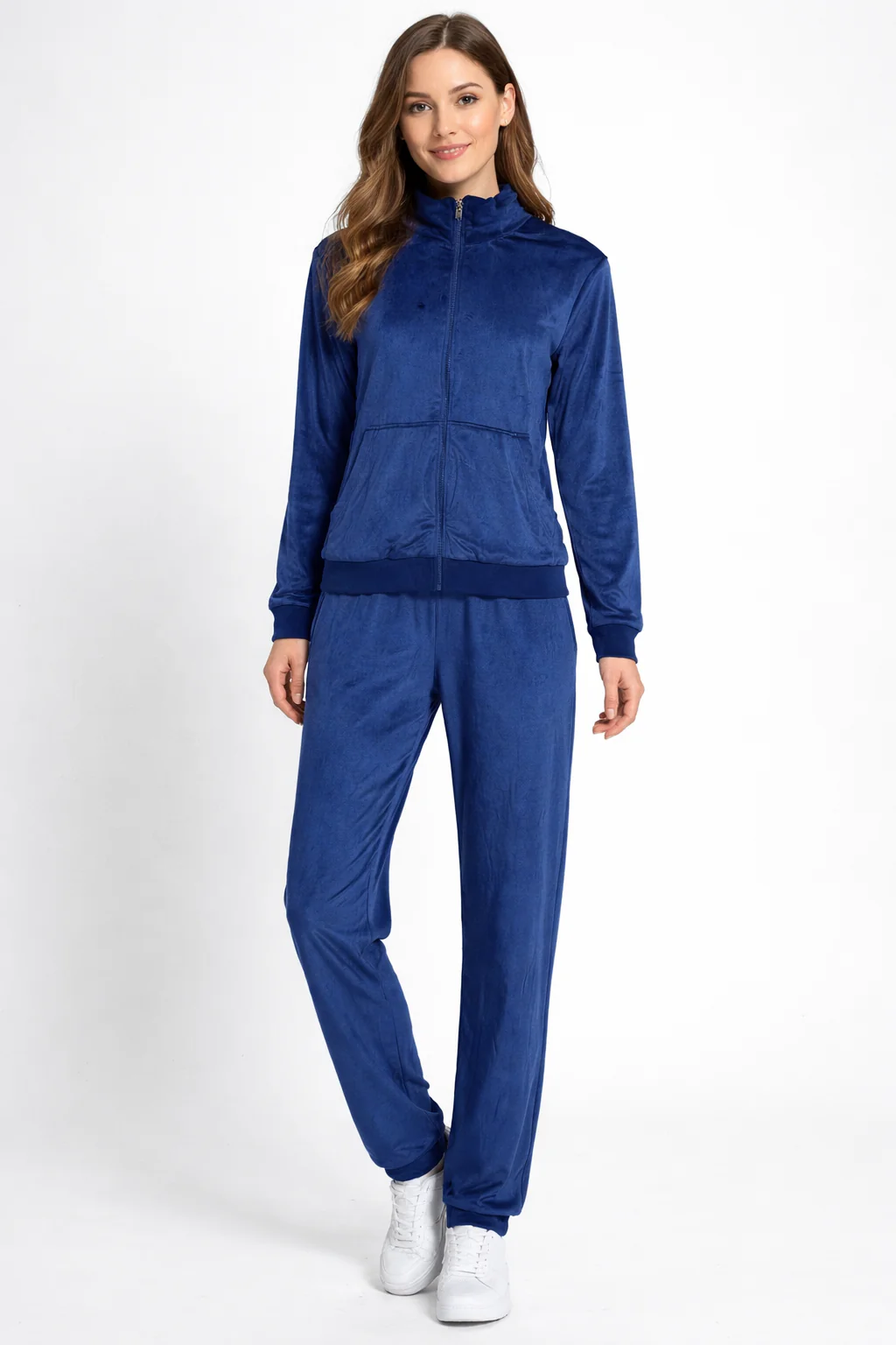 Composta da giacca con zip frontale e pantalone coordinato, รจ realizzata in tessuto vellutato al tatto, caldo e piacevole sulla pelle. Il design pulito valorizza la silhouette senza rinunciare alla comoditร .