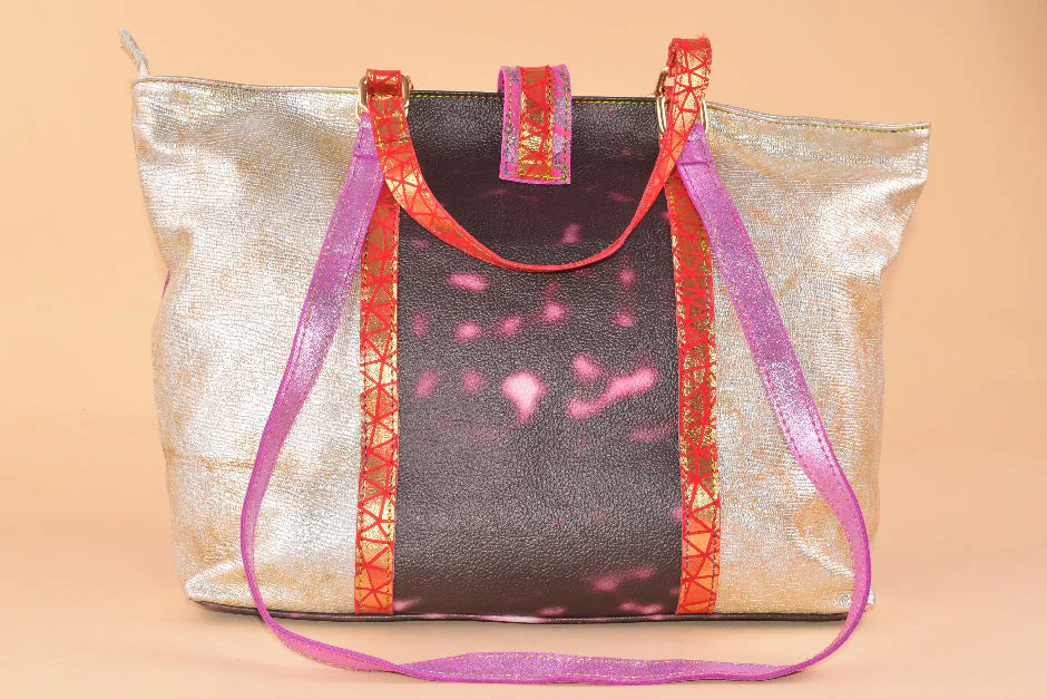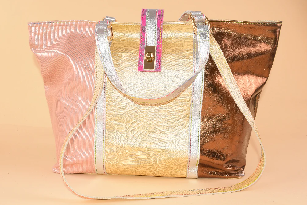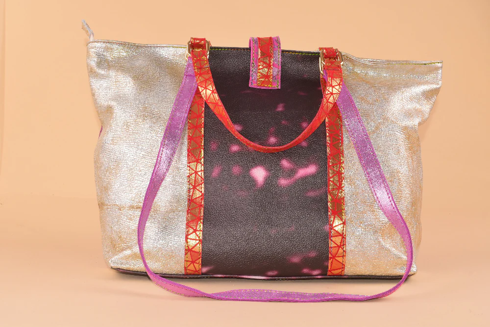 Borsa a mano e a spalla in pelle patchwork che unisce stile e versatilitร .